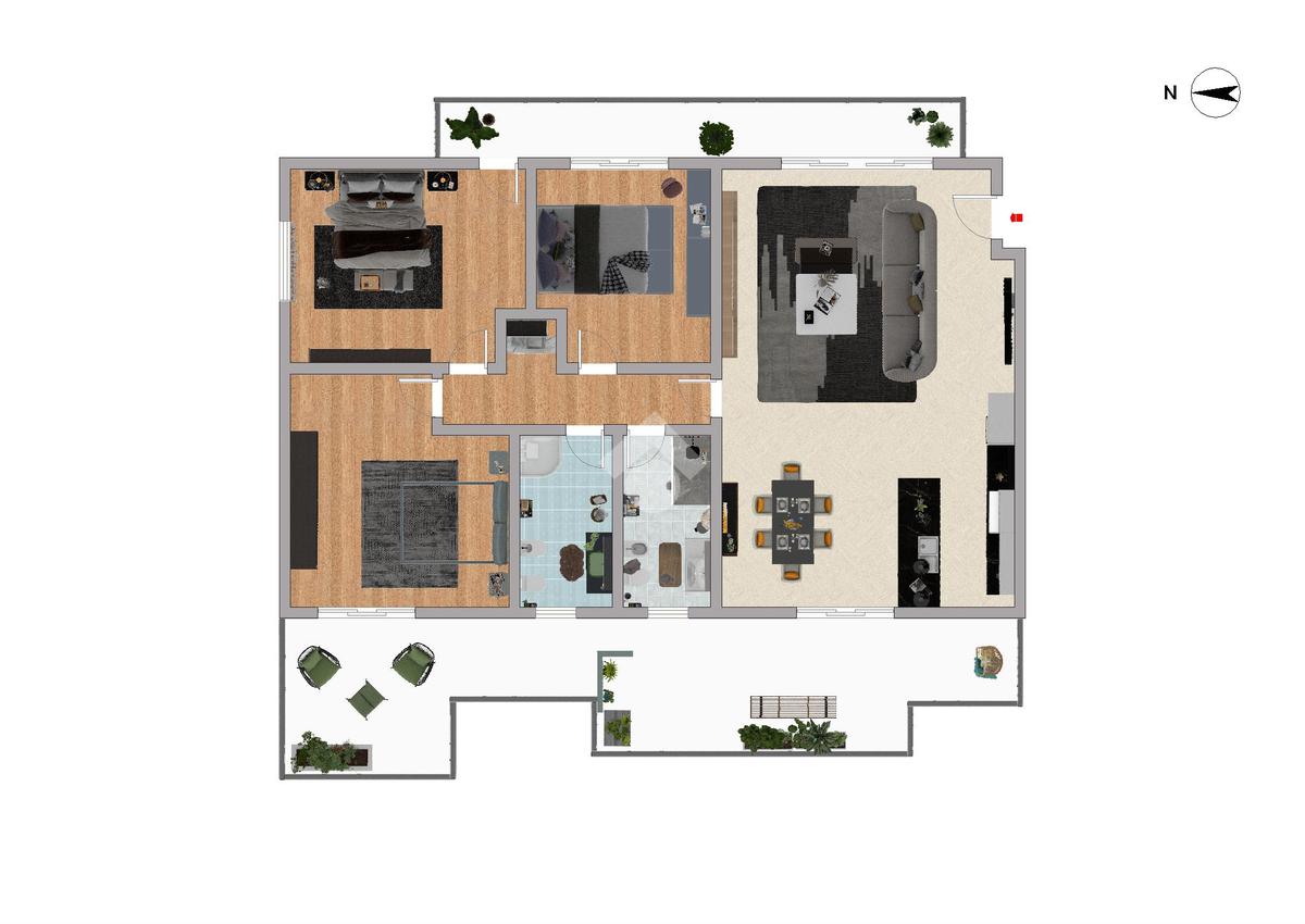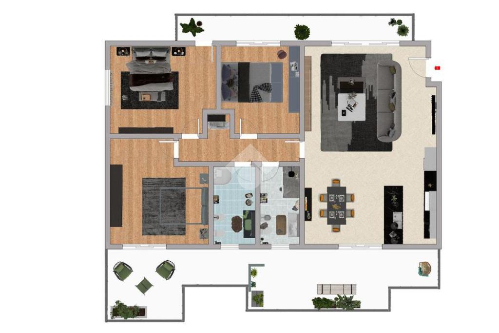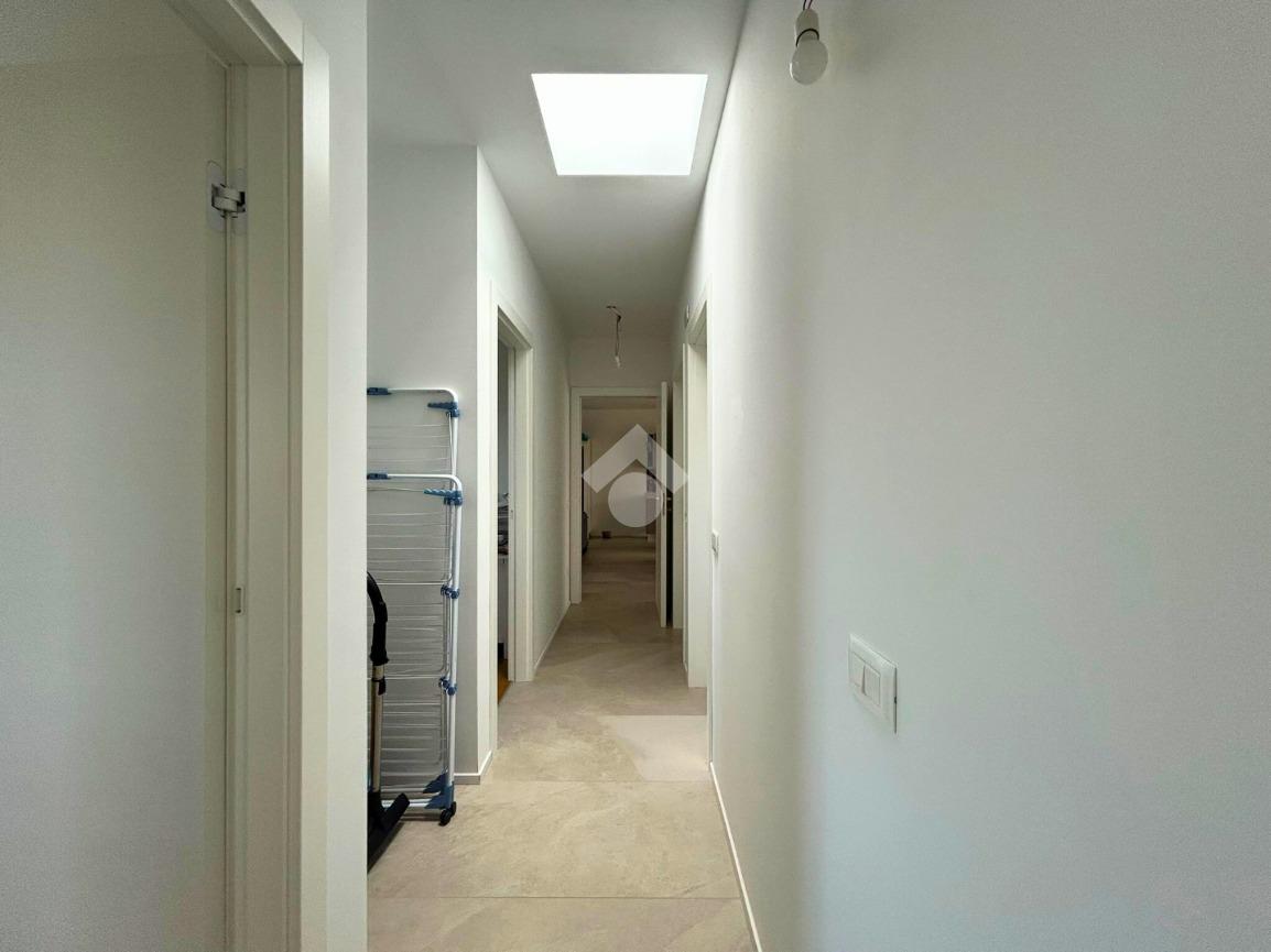 L’intero appartamento è servito da riscaldamento a pavimento; pavimentazione in gres nella zona giorno e parquet nella zona notte; infissi sono in triplo vetrocamera, tapparelle antisfondamento motorizzate e controllabili da remoto.