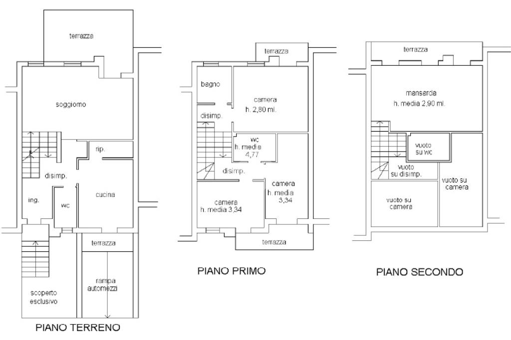 Al piano terra l’ingresso conduce a un soggiorno di circa 26 mq, affiancato da una cucina abitabile con accesso al terrazzino esposto a ovest, perfetto per momenti di relax all’aperto. Completa il piano un bagno di servizio. Salendo al primo piano troviamo la zona notte composta da una camera matrimoniale con terrazzo esposto a est, una camera singola con terrazzo a ovest, una camera doppia con soppalco, e due bagni finestrati, uno con vasca e uno con doccia, comodi e ben rifiniti.