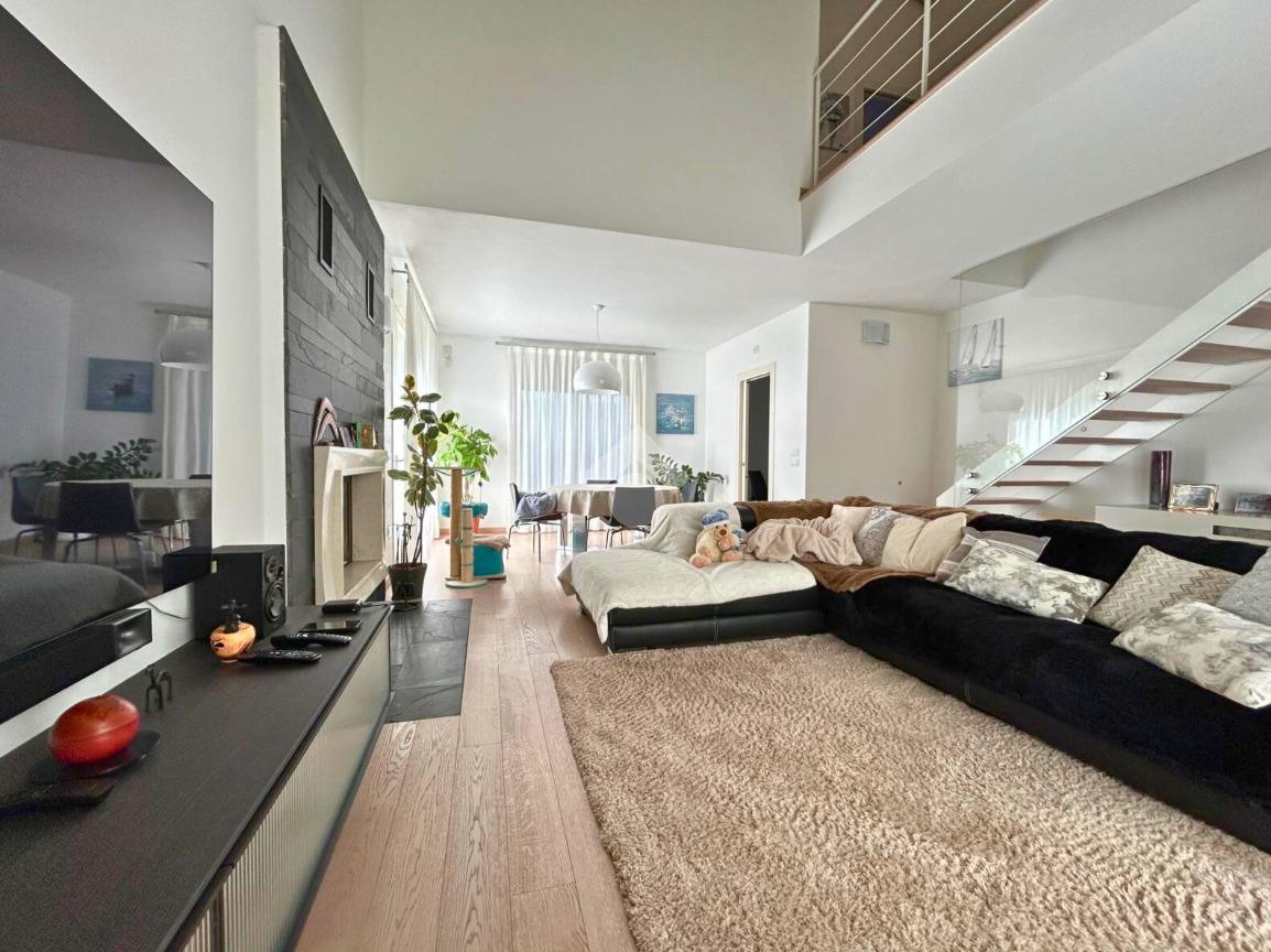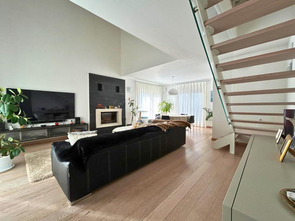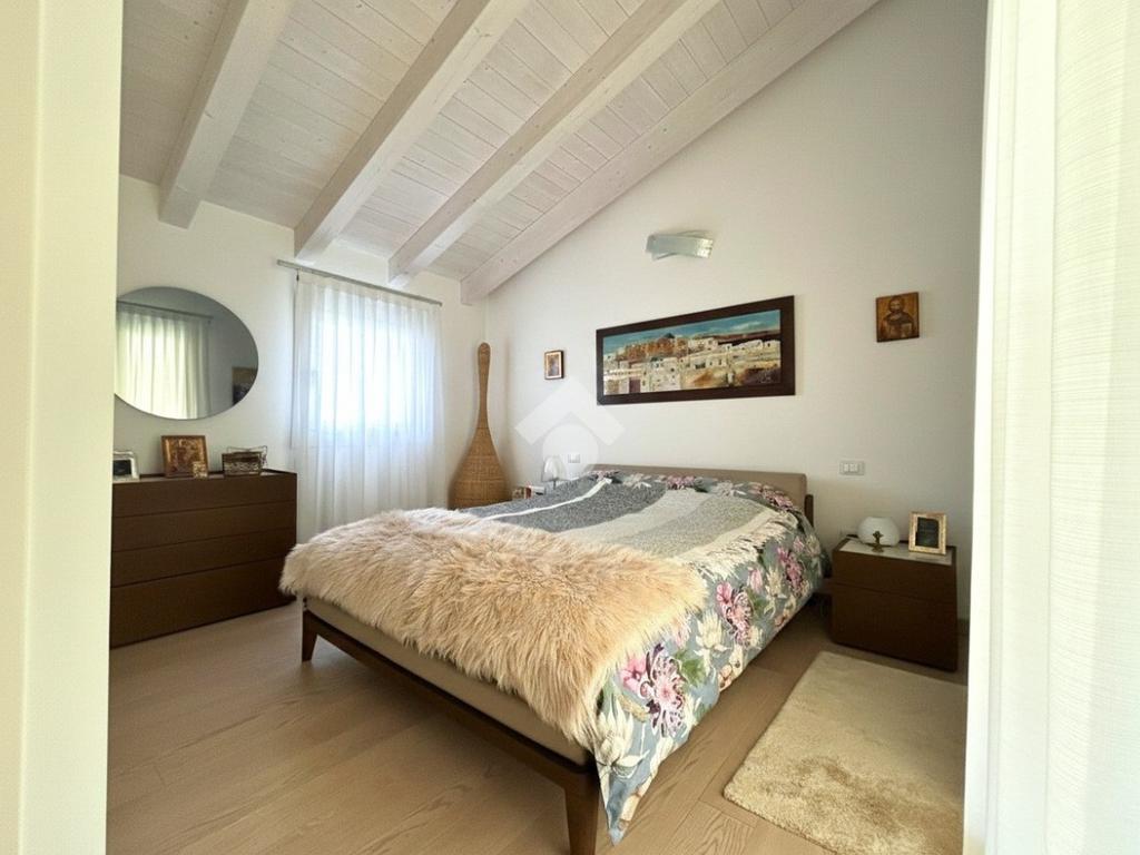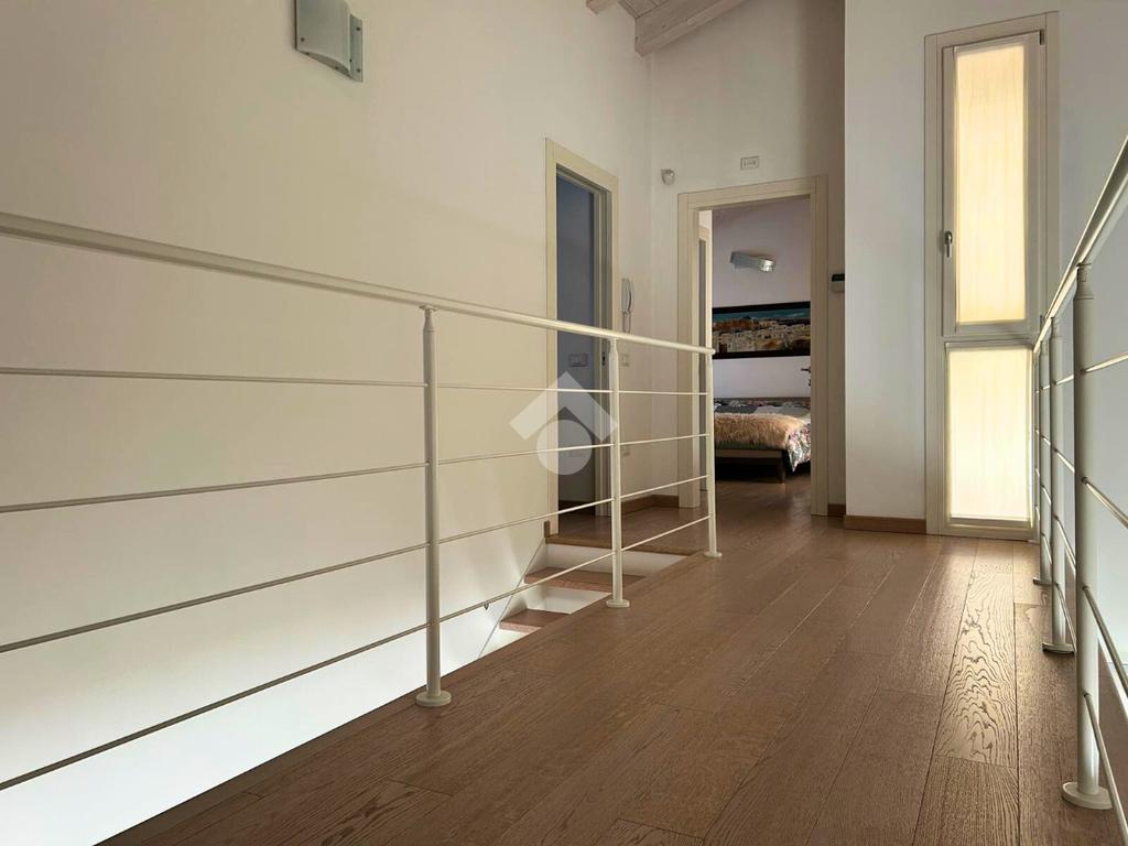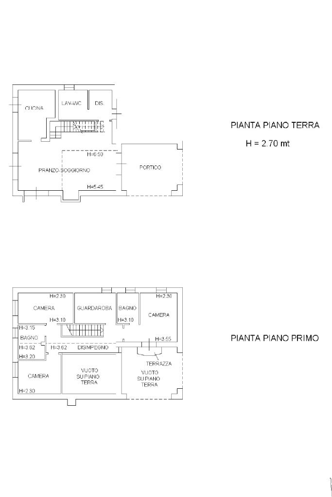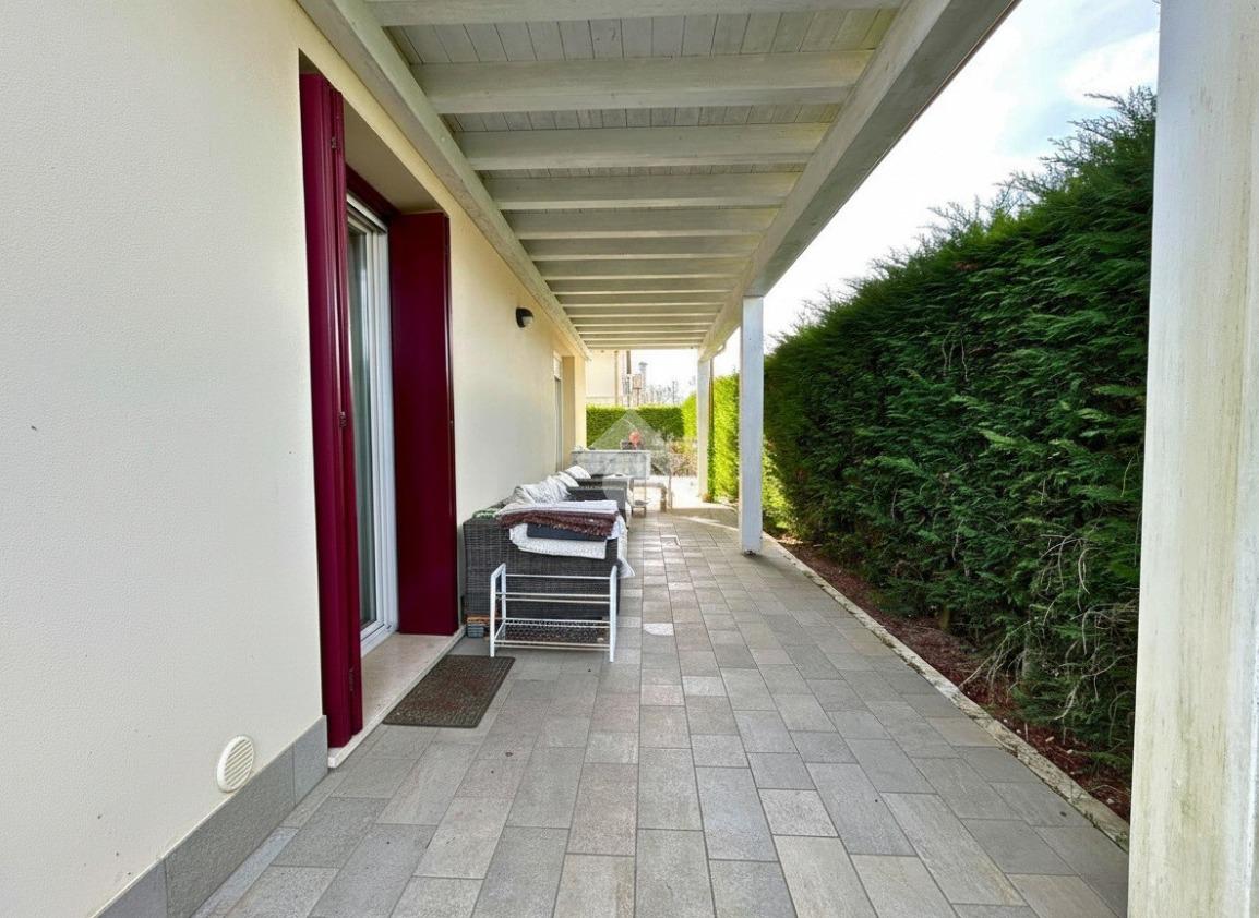 L'immobile si sviluppa su due livelli. Il piano terra è composto da un porticato di 17 mq che conduce alla zona living con soggiorno open space di 37 mq dotato di camino, cucina separata abitabile (entrambi con accesso allo scoperto), bagno finestrato con doccia, cabina armadio e lavanderia.
