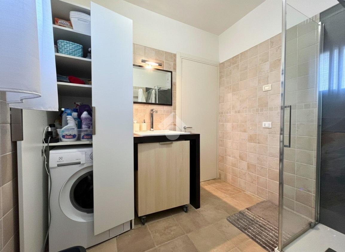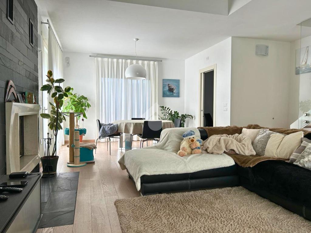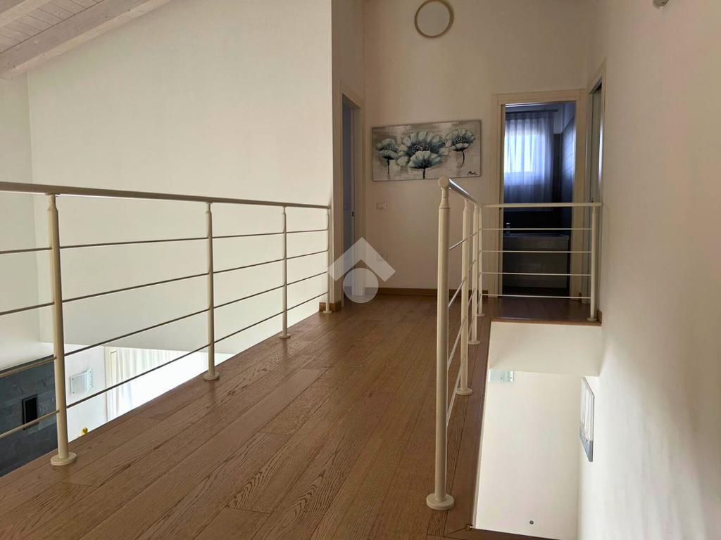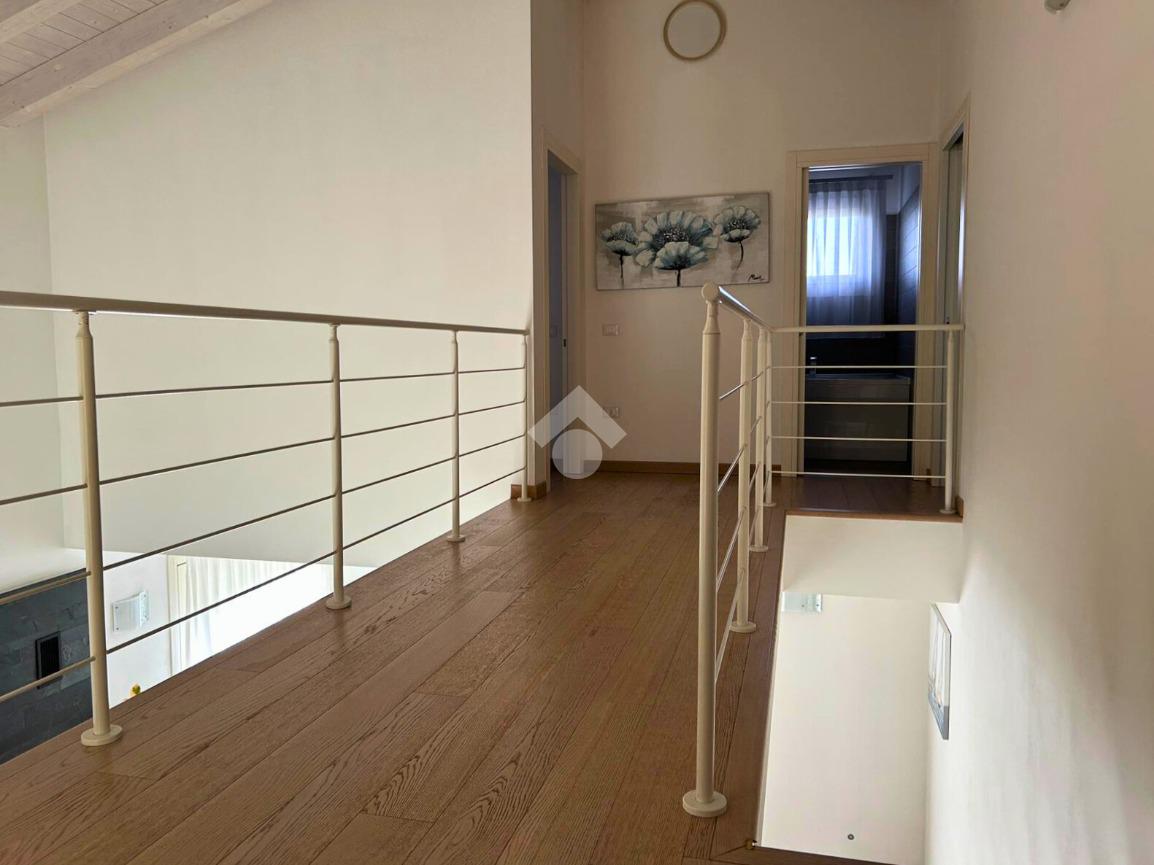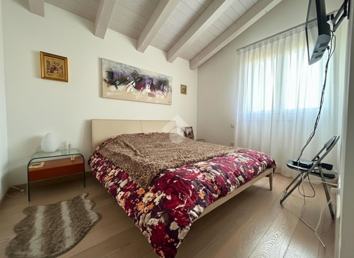 L'immobile si sviluppa su due livelli. Il piano terra è composto da un porticato di 17 mq che conduce alla zona living con soggiorno open space di 37 mq dotato di camino, cucina separata abitabile (entrambi con accesso allo scoperto), bagno finestrato con doccia, cabina armadio e lavanderia.