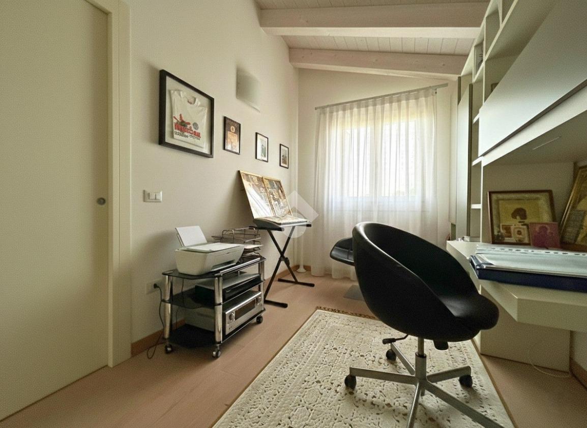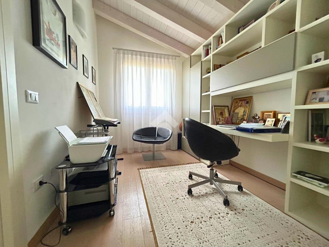 La zona notte al primo piano è composta da un disimpegno, una camera matrimoniale di 14 mq con bagno padronale finestrato, una camera doppia di 11 mq, una seconda camera doppia di 10 mq e un ulteriore bagno finestrato con vasca idromassaggio. Completa il piano una stanza con cabina armadio dalla quale si può ricavare una quarta camera.