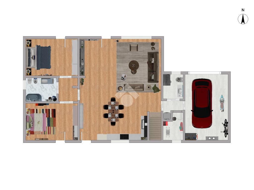 La soluzione sarà dotata di riscaldamento a pavimento, impianto fotovoltaico, impianto di climatizzazione con pompa di calore, allarme perimetrale e volumetrico e cappotto esterno.