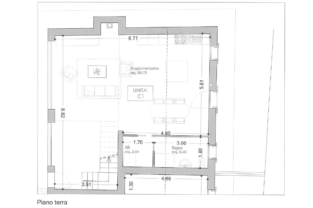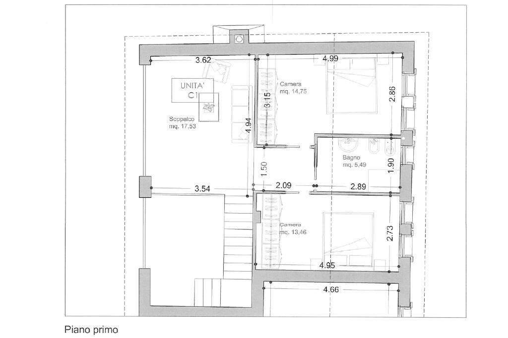 L’abitazione si sviluppa su due livelli: al piano terra si trova la zona giorno di 60 mq con soggiorno e cucina open-space, oltre a un antibagno e bagno. Al primo piano la zona notte comprende due spaziose camere da letto, una terza stanza pluriuso soppalcata e due bagni.